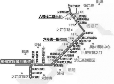 6号线一期(双浦站-丰北站),共有19个站,线路经过凤凰公园、美院象山、奥体,钱江世纪城等。8月8日,6号线一期公建中心站主体围护结构正式开工建设。公建中心站位于江南大道与诚业路交叉路口,沿江南大道东西向布置。车站为地下两层结构,长约186米,宽约22米,设置4个出入口。